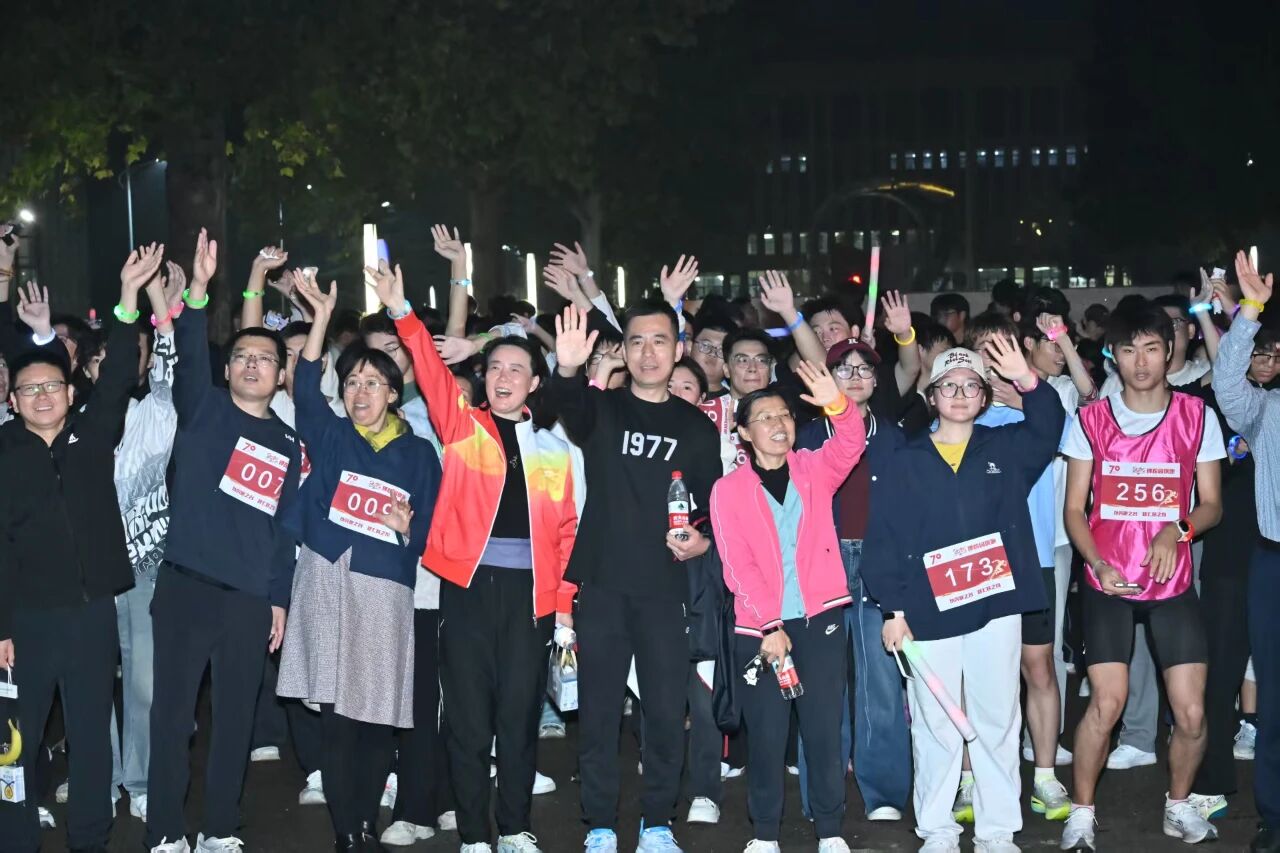 夜跑中,师生并肩前行。教职工节奏稳健,学子们活力十足。志愿者默默付出,提供后勤服务,分布在各个点位,为选手递水、指引方向。所有参与者顺利完成 3公里夜跑,活动在集体合影中落幕。