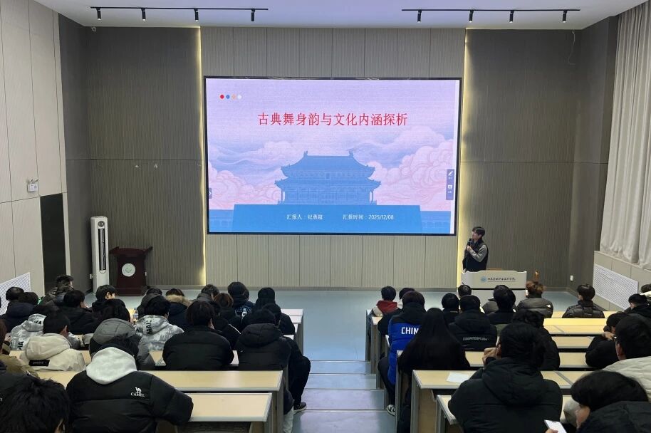 活动中,纪勇超以“身韵为核,文化为魂”为核心展开讲解,系统阐释古典舞身韵的起源与发展脉络,通过理论讲解与动作示范结合的方式,拆解动作要领并解读背后文化内涵,将身韵动作与传统哲学、礼仪美学相联系。现场互动热烈,师生积极参与实操体验,在实践中体悟古典舞魅力。