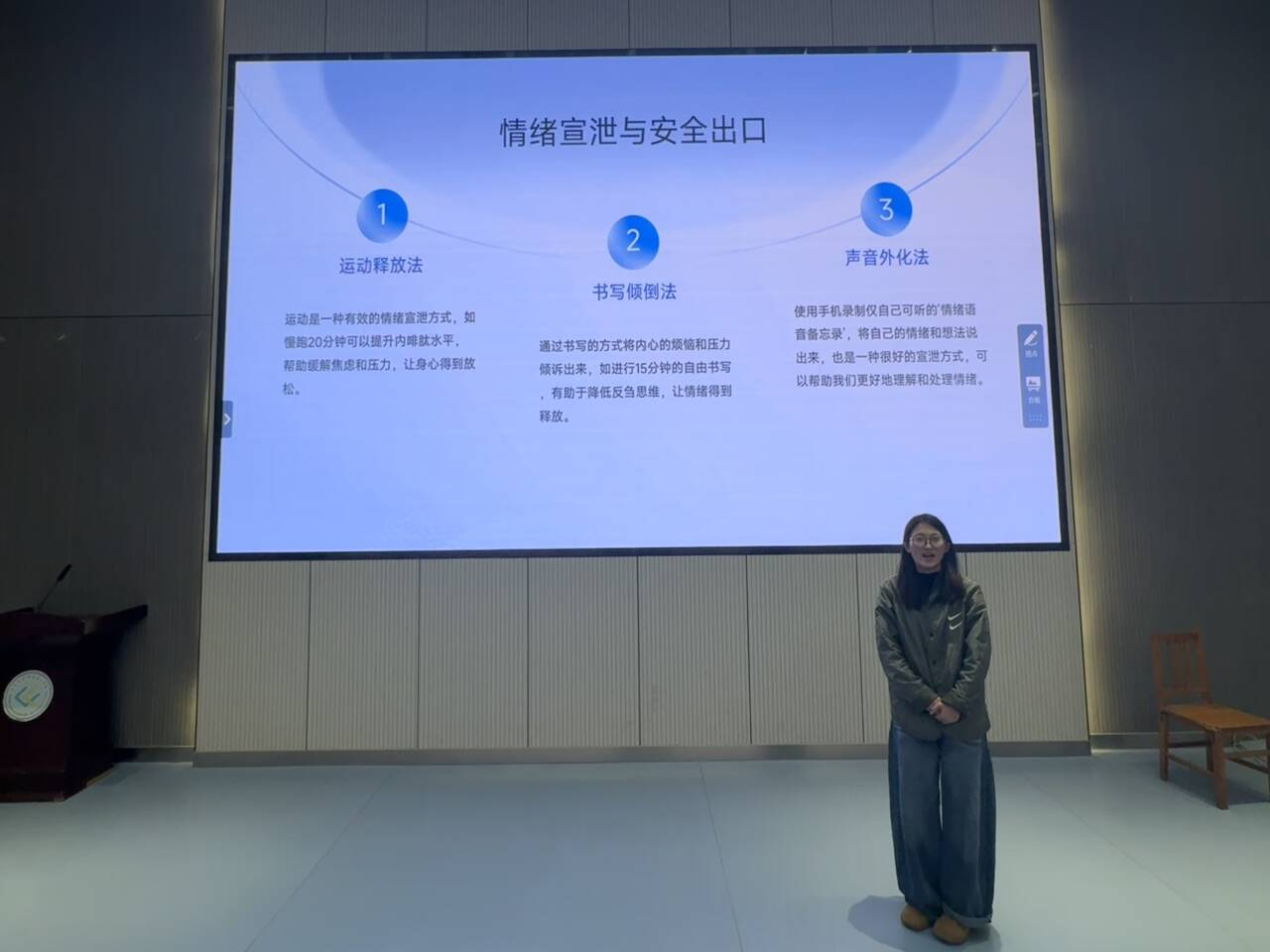 讲座上,丁雪首先剖析了毕业生面临的岗位竞争、职业定位、家庭期望三大压力来源,指出“压力等同于能力不足”“追求完美工作”等认知误区,引导学子以成长型思维看待求职过程,将挫折转化为成长契机。