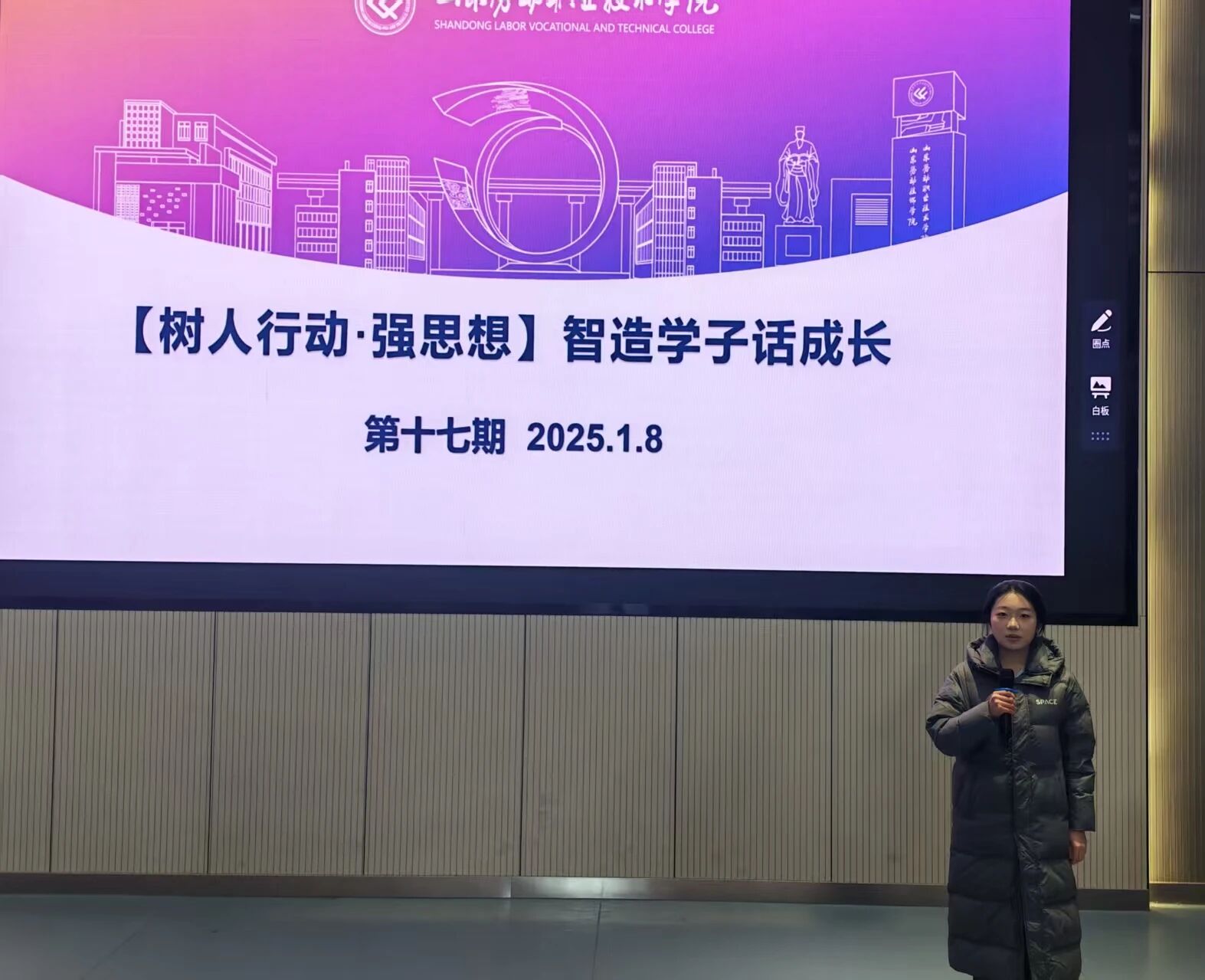 1月8日,山东劳动职业技术学院(长清校区)智能制造系在三号楼3108活动室举办第十七期“智造学子话成长”。本期主题为“青春加速度,智造向未来”,特邀2024级优秀学子马法超、王智娴,为2025级学弟学妹分享他们的成长故事与奋斗心得。