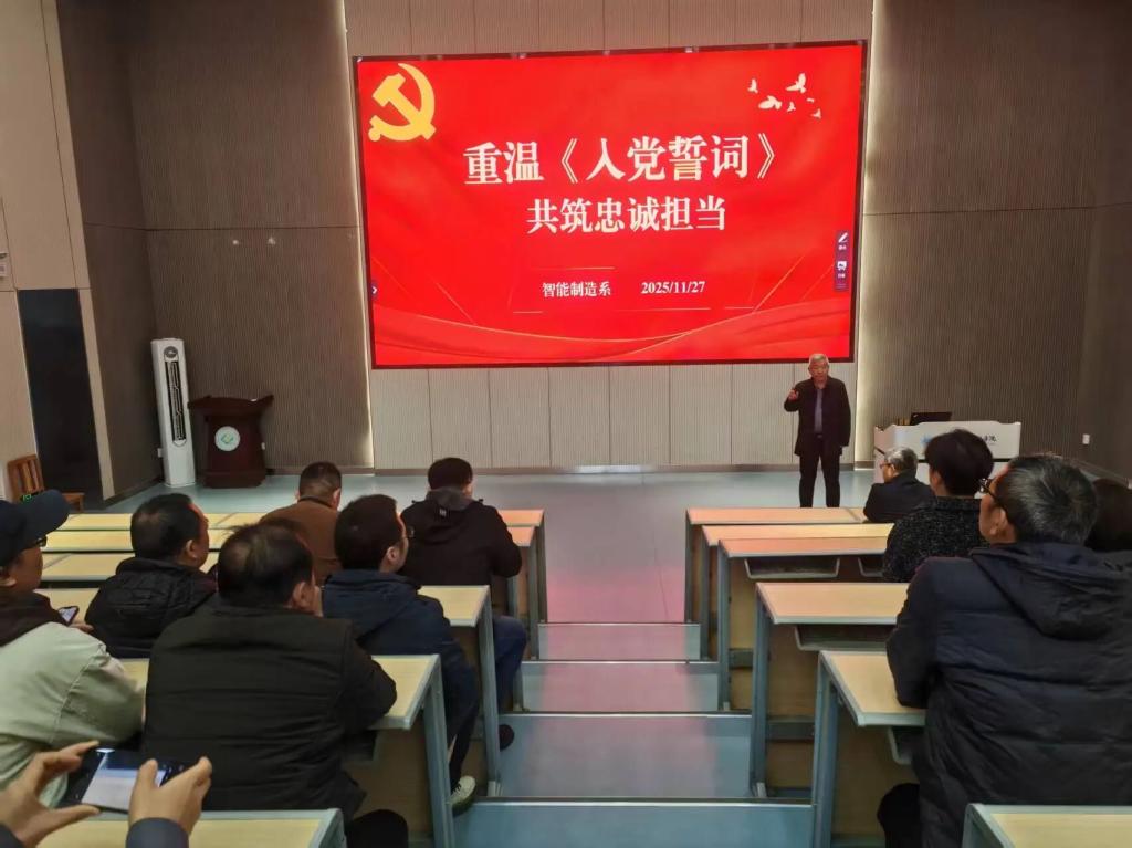 11月27日,为进一步贯彻落实新时代教师队伍建设要求,持续强化师德师风和政治素养,不断提升教师的党性修养与理论水平。智能制造系组织开展“重温入党誓词·共筑忠诚担当”主题教育活动,系领导班子、全体教职员工共同参与。