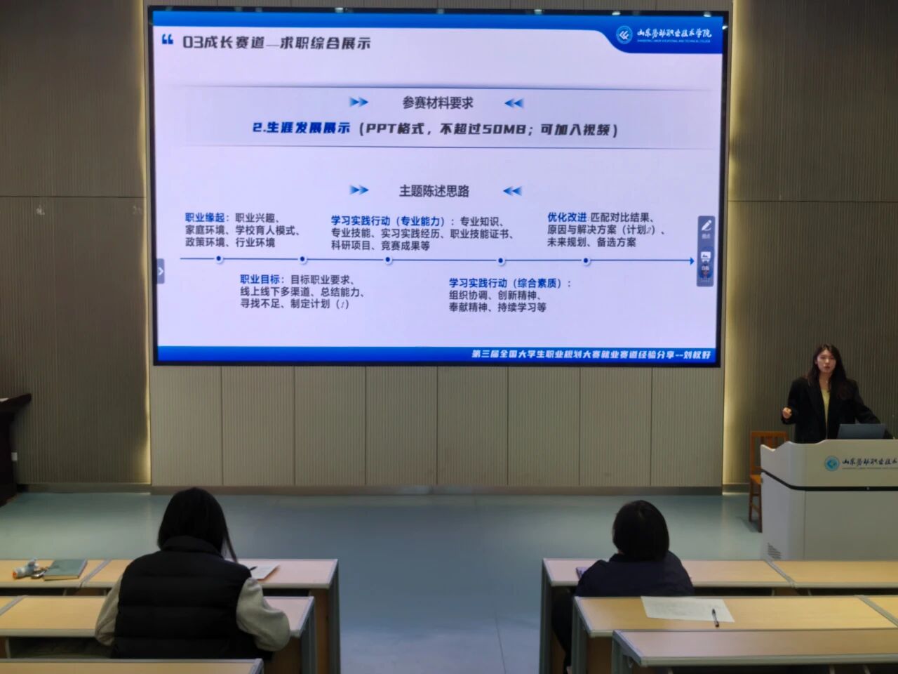 11月25日,智能制造系第三届大学生职业规划大赛赛前培训在3108会议室举办,第二届全国大学生职业规划大赛优秀指导教师刘权好为同学们进行赛前指导。