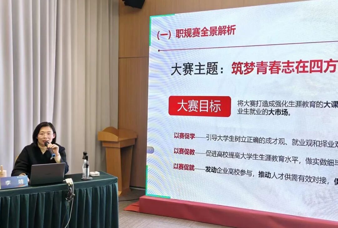 本次研修围绕大赛机制解析、课程教学创新与实践能力提升展开系统培训,设置多项专题授课。山东工艺美术学院解恒岩、南京特殊教育师范学院郭建勇、山东大学李婧、广东农工商职业技术学院朱亚星、扬州大学孙鹏程等授课专家,分别就大赛通关策略、教学赛道设计、课程建设与生涯教育逻辑等主题进行分享,内容兼具理论高度与实践深度。